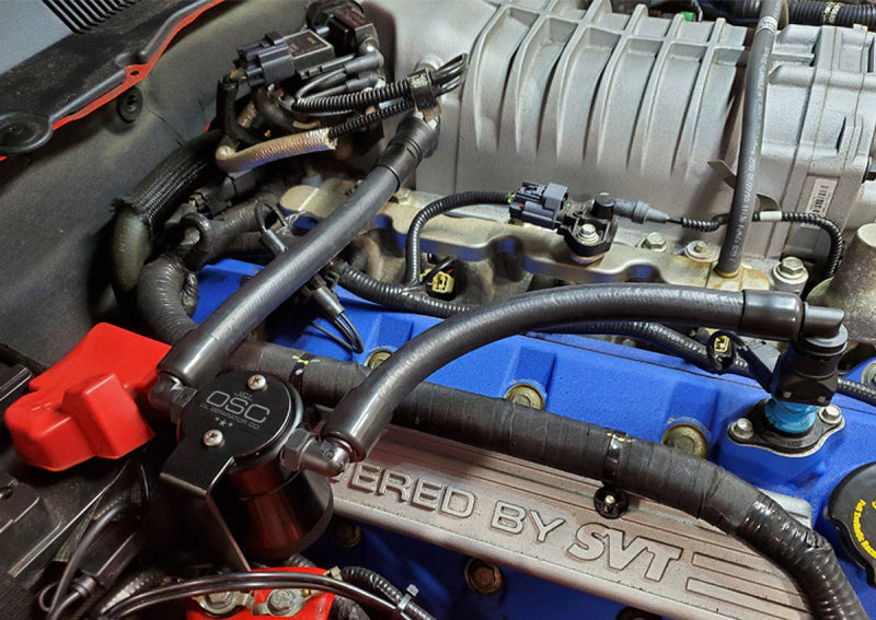 J&L 07-14 Ford Mustang GT500 Oil Separator 3.0 Passenger Side (Remote Mount) - Black Anodized