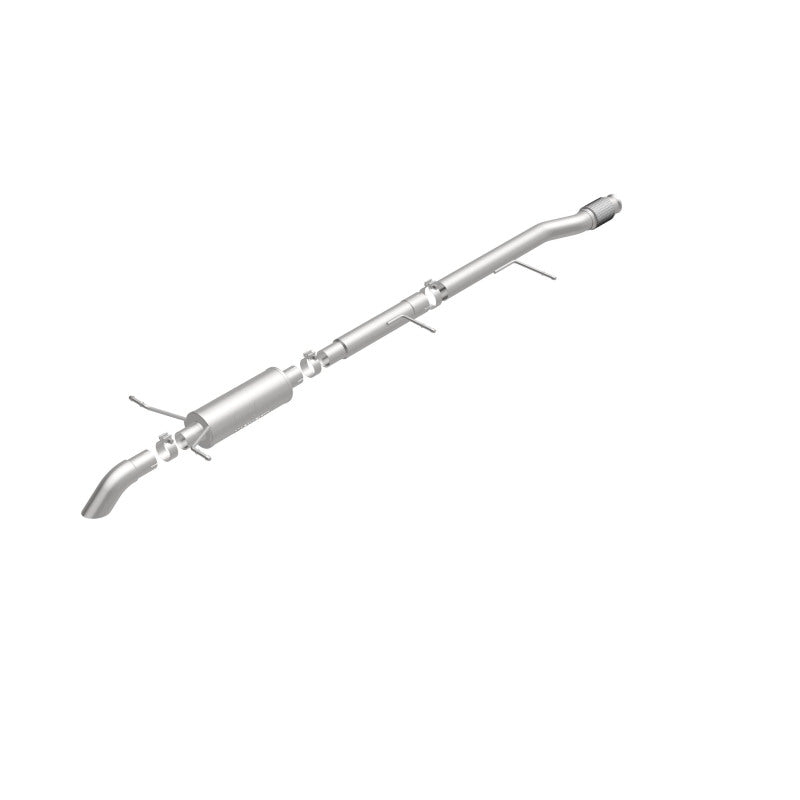The MagnaFlow Off-Road Pro Series Cat-Back Performance Exhaust System 17146 brings additional off-roading prowess and our deep signature exhaust note to your Truck with a weight-optimized, dyno-tested, corrosion resistant and durable stainless steel design engineered to closely hug the undercarriage for improved ground clearance. Exhaust kit 17146 is engineered to produce Very Aggressive exterior and Aggressive interior sound levels. Extensive 3D scanning was used during the development of this Truck exhaust system to create a direct-fit design, enabling a do-it-yourself installation process. 17146's emissions-legal cat-back design replaces all your truck's exhaust components from the catalytic converter on back with its 3in. diameter mandrel bent main piping that passes through 1 Straight-Through mufflers before ending in a turndown before rear axle exit with 3in. Satin Clamp-On Single Wall Turndown Cut Edge tips. Exhaust system 17146 is produced using advanced CNC precision robotic manufacturing techniques and backed by MagnaFlow's limited lifetime warranty.